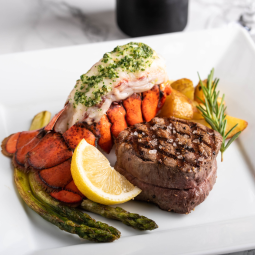 Filet mignon et queue de homard au beurre à l’ail